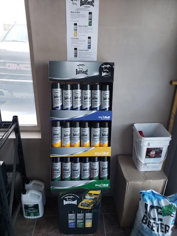 We offer a great product display case, customer usage posters, your location in Canada posted on the Bullsnot Canada website and the US website, fast delivery from our Canadian based inventory and a money back guarantee.